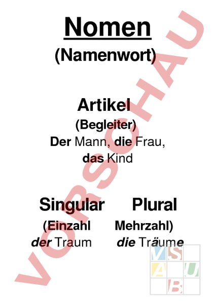 Merktafel Nomen zum Aufhängen im Schulzimmer