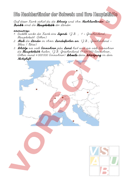 Arbeitsblatt: Schweiz und ihre Nachbarländer
