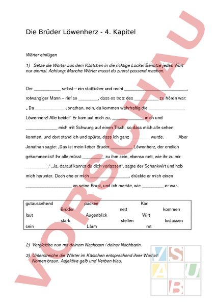 Arbeitsblatt: Lückentext Die Brüder Löwenherz 4. Kapitel