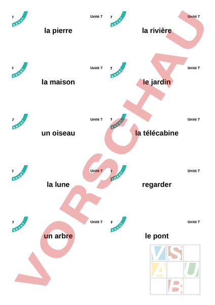 Arbeitsblatt: Envol 7 unité 7 Karteikarten