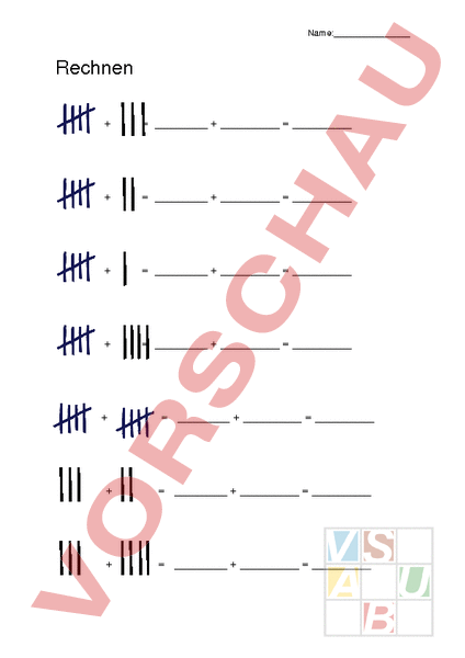 Rechnen bis 10 mit Hilfe von Strichen (Kraft der 5).