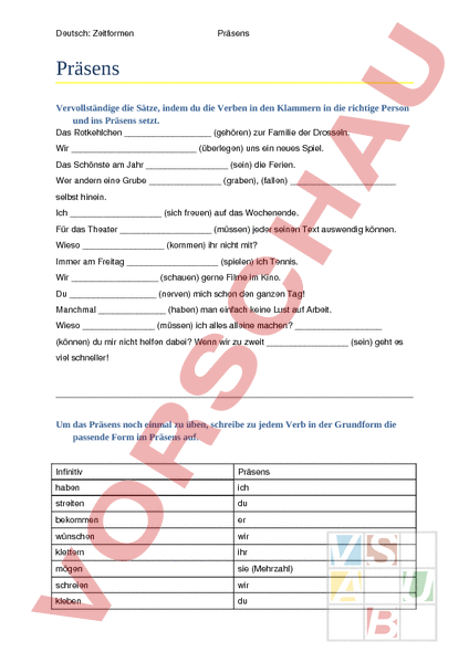 Arbeitsblatt: Präsens