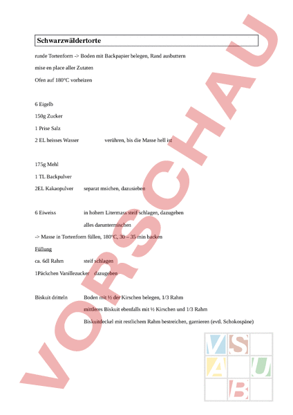 Arbeitsblatt: Schwarzwäldertorte Rezept