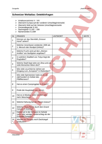 Arbeitsblatt: Atlasarbeit: Detektivfragen