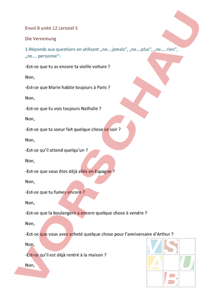 Arbeitsblatt: envol 8 unité 12 Die Verneinung