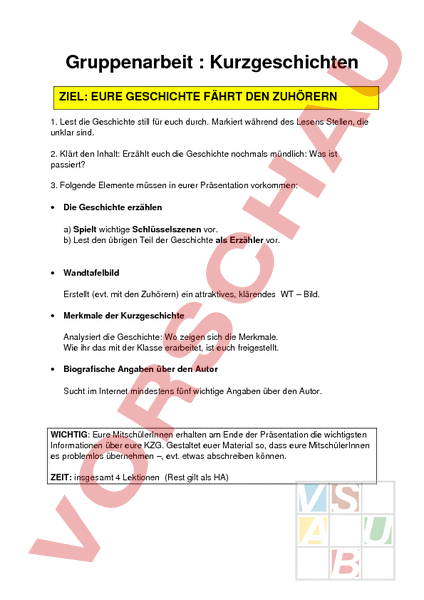 Arbeitsblatt: Kurzgeschichten Gruppenarbeit