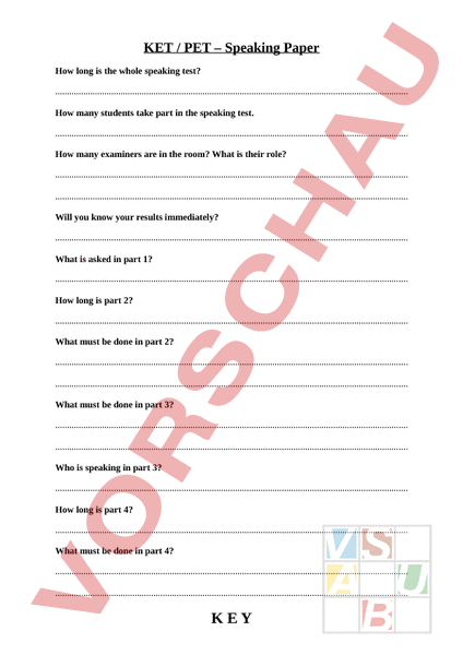 Fragen und Youtube angaben zur Vorbereitung auf den Speaking Part von KET/PET Prüfungen