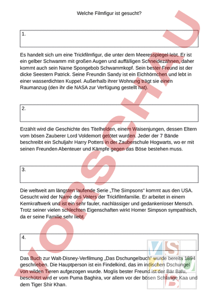 Arbeitsblatt: Welche Filmfigur ist gesucht?