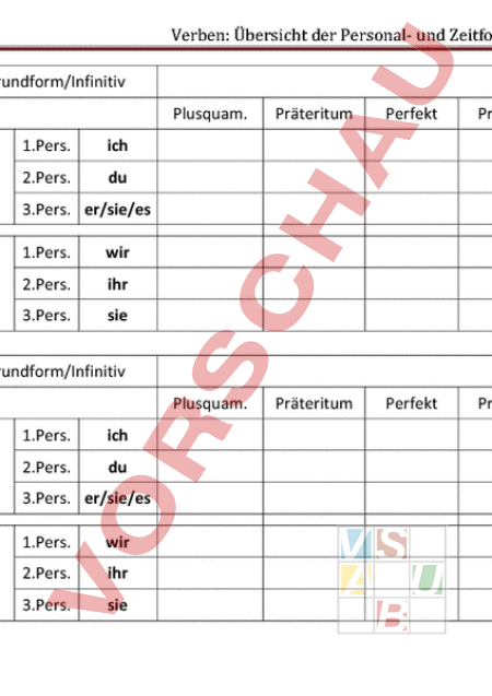Übersicht der Personal- und Zeitformen