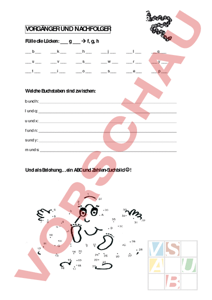 Vorgänger/Nachfolger suchen, Buchstaben zwischen 2 festgelegten Buchstaben finden, Belohnung: von Punkt zu Punkt - Bild