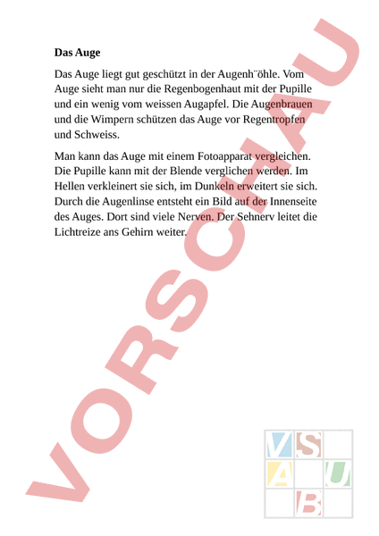 Informationstext über das Auge (gedacht als Folie zum Abschreiben).