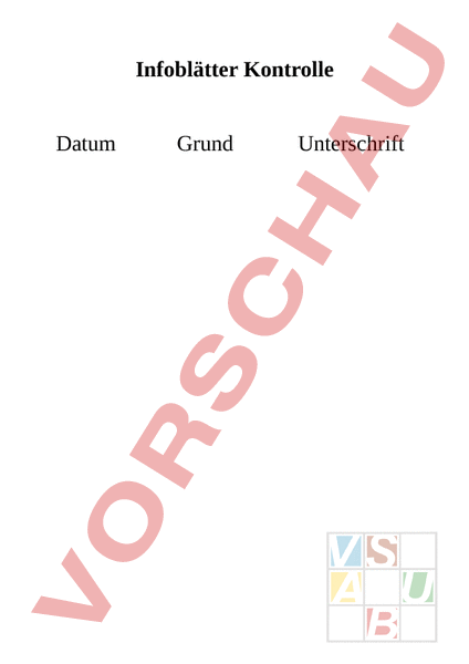 Infoblätter Kontrolle Datum Grund Unterschrift
