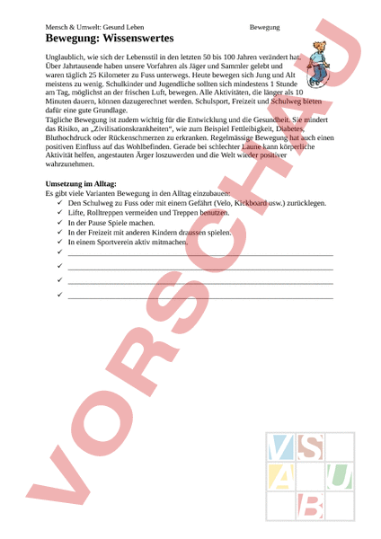 Arbeitsblatt: Wissenswertes zur Bewegung
