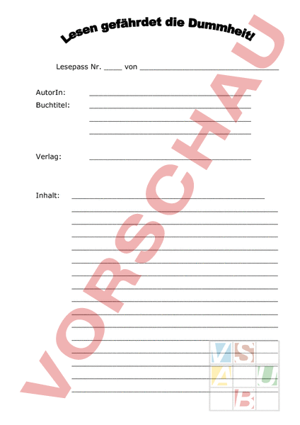 Ein Hilfsblatt zum Erstellen des Lesepasses ist angefügt (Hilfsfragen, Formulierungshilfen)