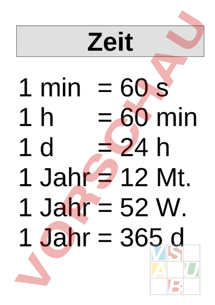 Zeit 1 min 60 1h 60 min 1d 24 1 Jahr 12 Mt. 1 Jahr 52 W. 1 Jahr 365