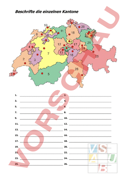 Beschrifte die einzelnen Kantone 1. 2. 3. 4. 5. 6. 7. 8. 9. 10. 11. 12. 13. 14. 15. 16. 17. 18. 19. 20. 21. 22. 23. 24. 25. 26.