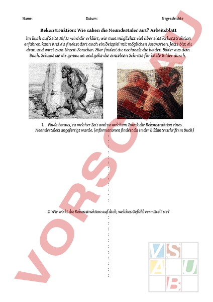 Arbeitsblatt: Rekonstruktion Neandertaler