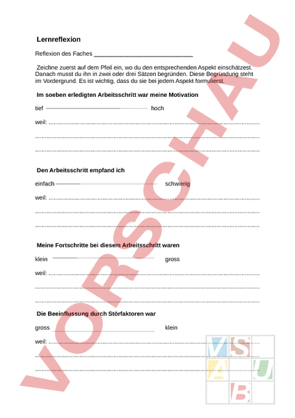 Arbeitsblatt: Lernreflexion