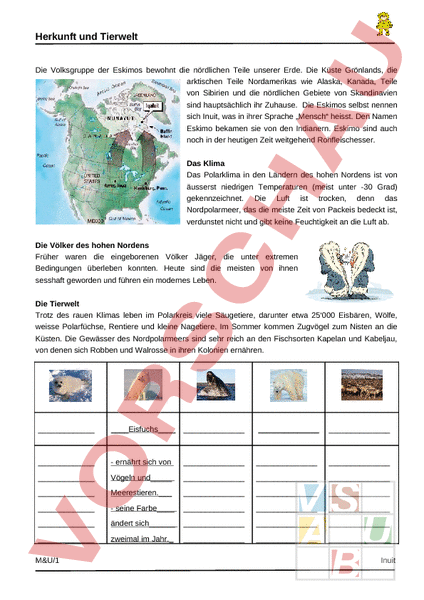 Arbeitsblatt: Geografische Herkunft Inuit - Eskimo