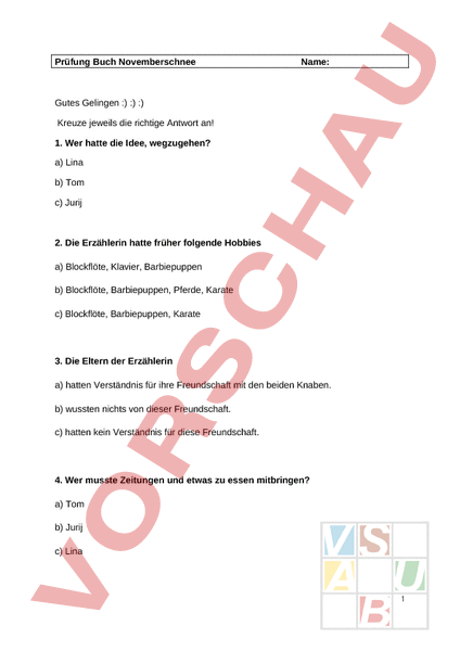 Arbeitsblatt: Prüfung zum Buch Novemberschnee