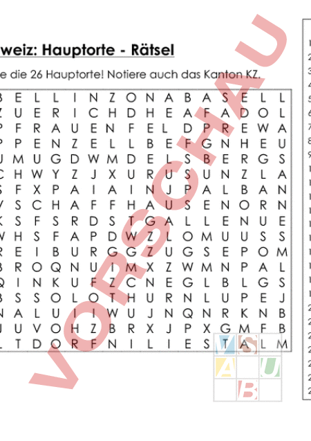 Arbeitsblatt: Hauptorträtsel der Kantone