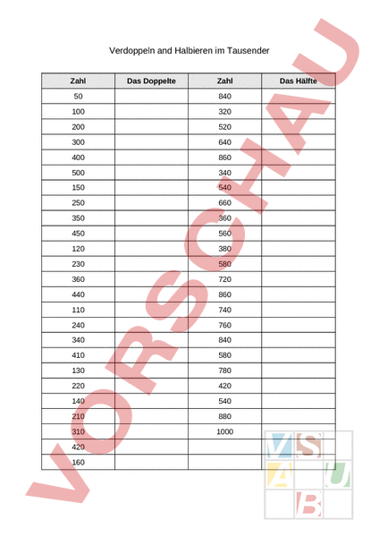 Arbeitsblatt: Verdoppeln und Halbieren im Tausender