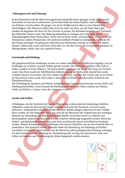 Arbeitsblatt: Jungsteinzeit: Texte zum selbständigen Bearbeiten