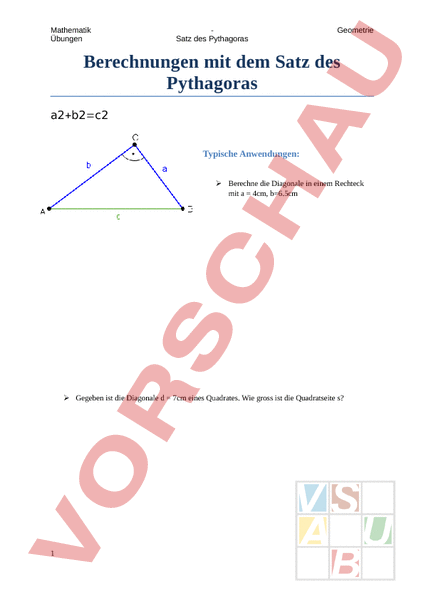 Aufgabenblatt Pythagoras