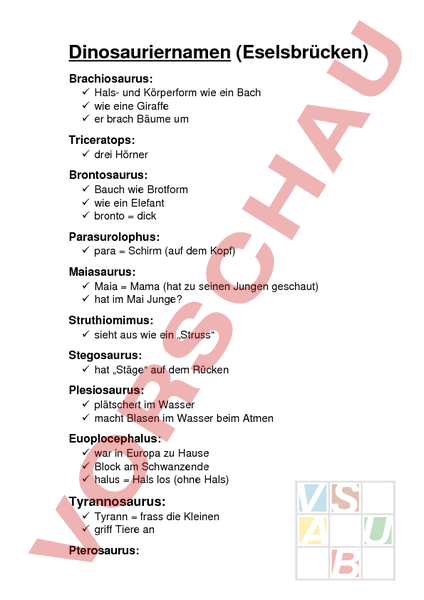 Arbeitsblatt: Dinosauriernamen - Eselsbrücken