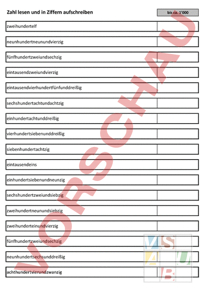 Arbeitsblatt: Zahlwort bis 1000