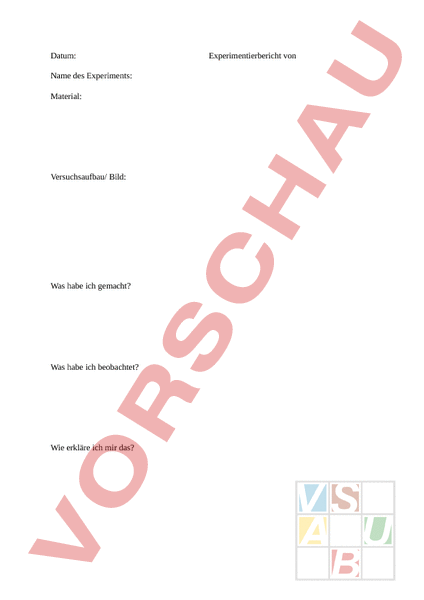 Datum: Name des Experiments: Material: Versuchsaufbau/ Bild: Was habe ich gemacht? Was habe ich beobachtet? Wie erkläre ich mir das? Experimentierbericht von
