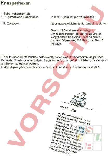 Knusperhexen 1 Tube Kondensmilch 1 P. gemahlene HaselnOsse Blech mit Backtrennfolie belegen, Zwiebackscheiben darauf legen und im vorgeheizten Backofen knusprig braun backen: Ofenmitte, 200 Grad, ca. 10 15 Minuten. Tipp: In einer GuetzlibOchse aufbewahrt, halten sich Knusperhexen lange frisch. Ev. mehr Oberhitze einschalten, Blech keinesfalls zu tief einschieben, da sie sonst am Boden zu dunkel werden. In der Migros gibt es auch kleinen Zwieback fOr kleinere Portionen zu kaufen.