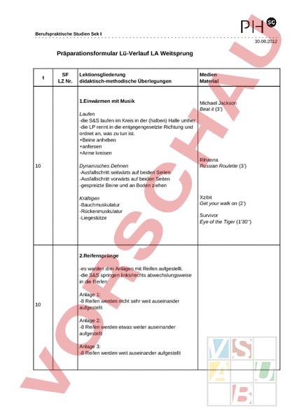 Arbeitsblatt: Doppellektion Weitsprung Präparation