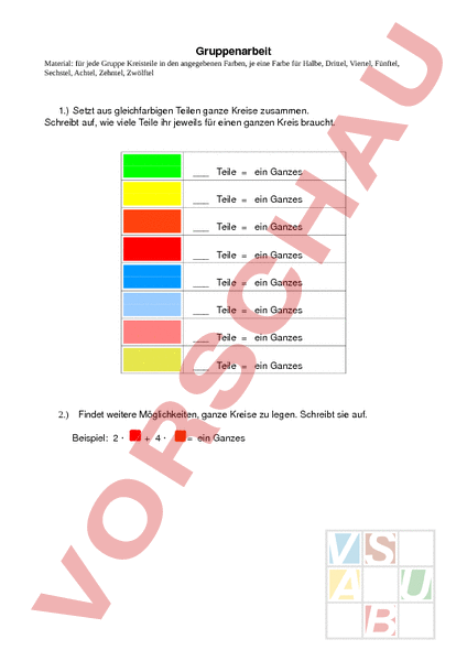 Arbeitsblatt: Gruppenarbeit Einstieg Bruchrechnen