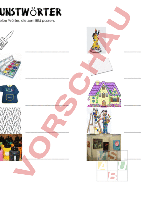 Arbeitsblatt: Schreiben zu Bildern zum Thema Kunst