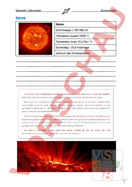 Arbeitsblatt: Sonnensystem - unsere Sonne und ihre 8 Planeten