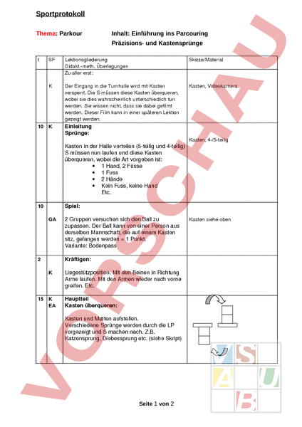 Arbeitsblatt: Sportprotokoll Parkour 1