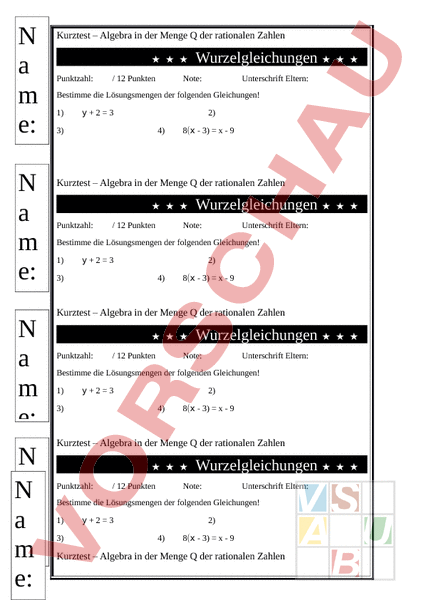 Arbeitsblatt: Kurztest Wurzelgleichungen