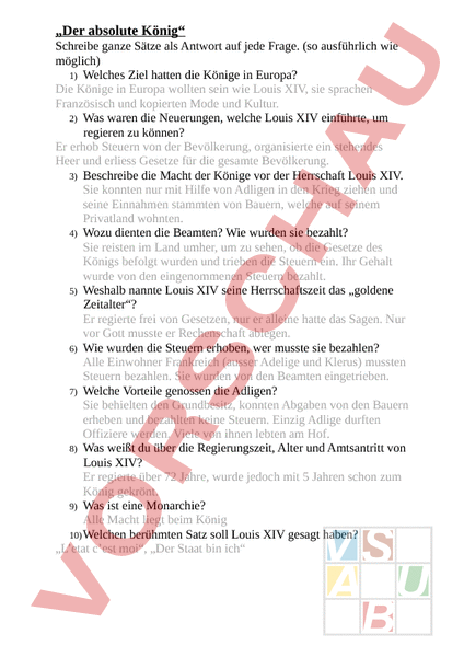 Arbeitsblatt: Absolutismus Fragen und Antworten
