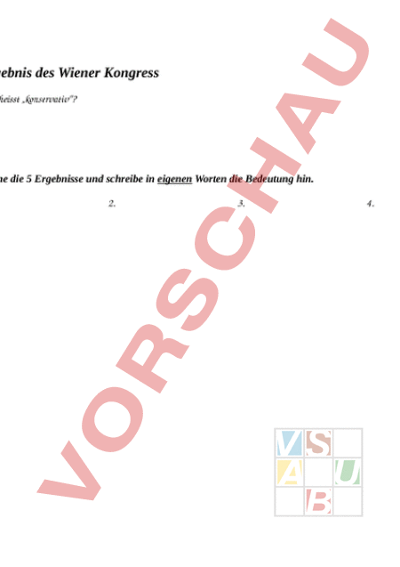 Ergebnisse des Wiener Kongress, Arbeitsblatt für die SuS, welche sie mit Hilfe des Buches "Durch Geschichte zur Gegenwart" 2 S.155 lösen können. Die Lösung ist im Dokument dabei.