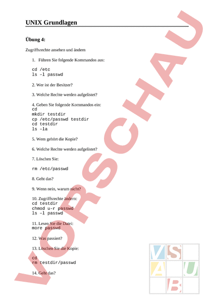 Arbeitsblatt: UNIX-uebung thema Zugriffsrechte