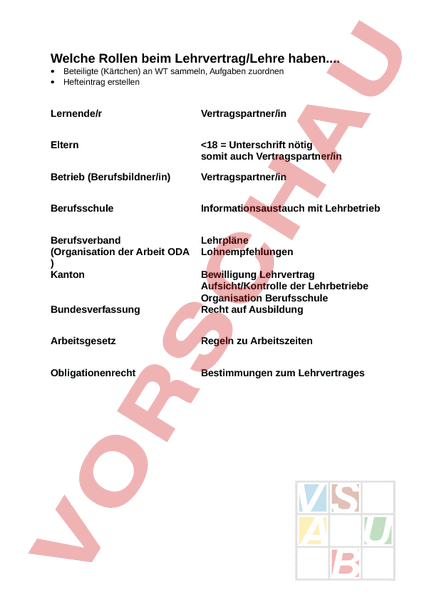 Arbeitsblatt: Rollen beim Lehrvertrag