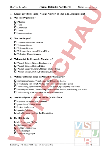 Arbeitsblatt: Bio-Test Nachtkerze