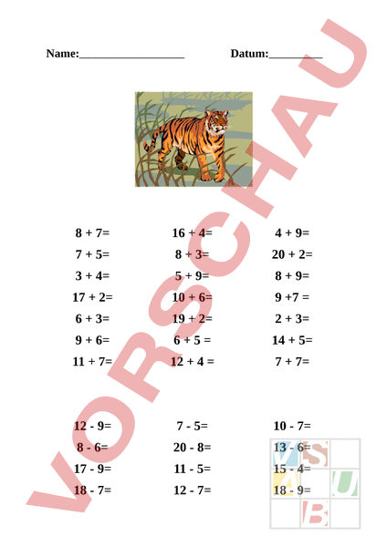 Arbeitsblatt: Addieren - Subtrahieren 1 - 20