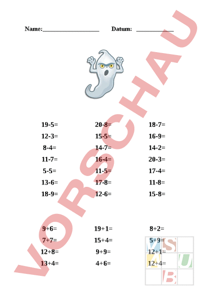 Arbeitsblatt: Addieren Subtrahieren 1 - 20