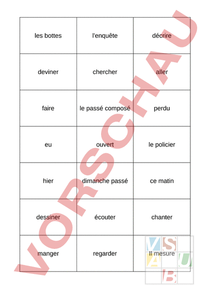 les bottes lenquête décrire deviner chercher aller faire le passé composé perdu eu ouvert le policier hier dimanche passé ce matin dessiner écouter chanter manger regarder Il mesure