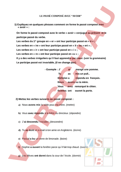 LE PASSÉ COMPOSÉ AVEC “AVOIR”