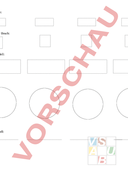 Dezimalbruch: gewöhnlicher Bruch: Rechteckmodell: Kreismodell: Streckenmodell: