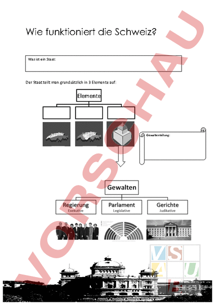 Wie funktioniert die Schweiz? Was ist ein Staat: Der Staat teilt man grundsätzlich in 3 Elemente auf: Elemente Gewaltenteilung: