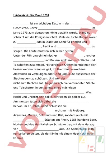 Arbeitsblatt: Lückentext: Der Bund 1291